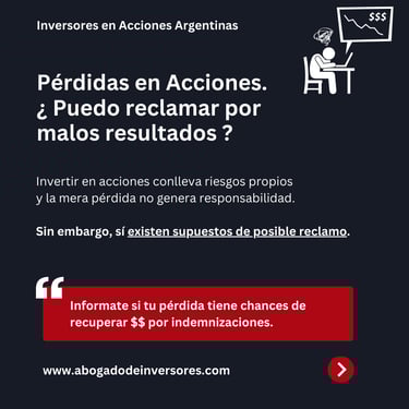 Invertir en acciones implica riesgo y la mera pérdida no genera responsabilidad. Sin embargo, existen situaciones donde un reclamo puede prosperar, como por ejemplo: