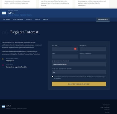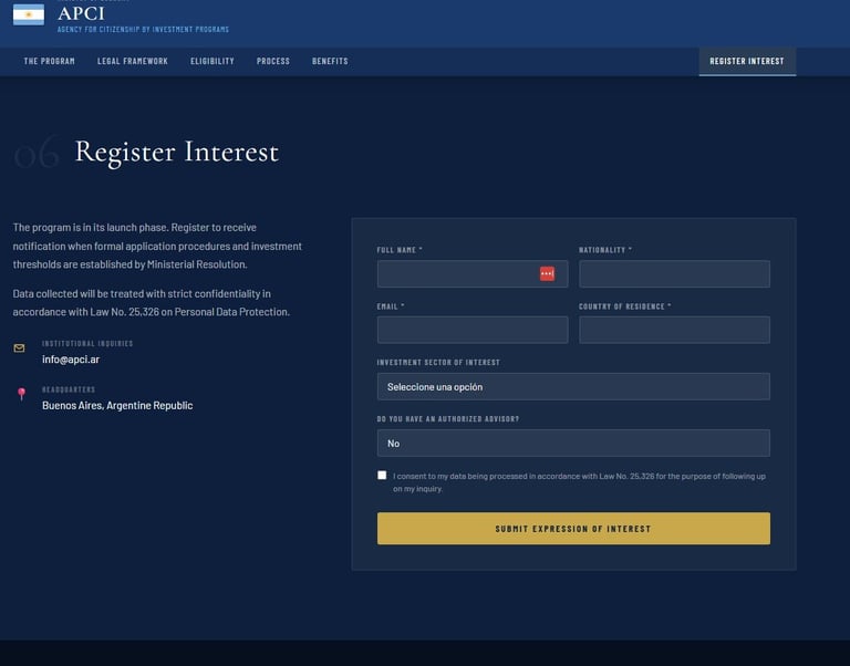 Recientemente, varios clientes del exterior consultaron sobre el sitio apci.ar, que se presentaba falsamente como el canal oficial de la Agencia para Programas de Ciudadanía por Inversión (APCI), dependiente del Ministerio de Economía.