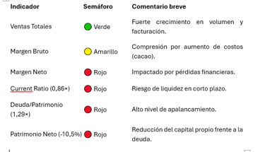 Liquidez: Deterioro a 0,86 (menor cobertura de pasivos corrientes).