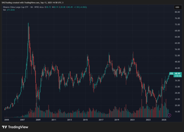 Para muchos traders internacionales, FXI es el atajo para jugar movimientos de corto plazo en “China” sin entrar en la complejidad de sus múltiples índices.