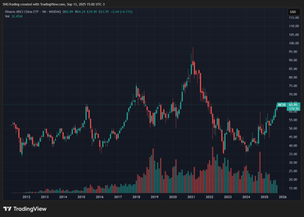 MCHI cotiza en USD, y te mostramos el gráfico de evolución desde 2012.
