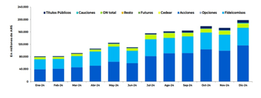 En 2024, el volumen total superó los ARS 1,629 billones. Pero la composición revela que la renta variable apenas roza la superficie: