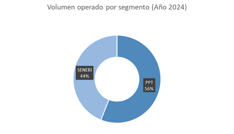Por canales, el segmento Prioridad Precio Tiempo (PPT) explicó alrededor del 56% del volumen, mientras SENEBI (negociación bilateral) aportó el 44%.